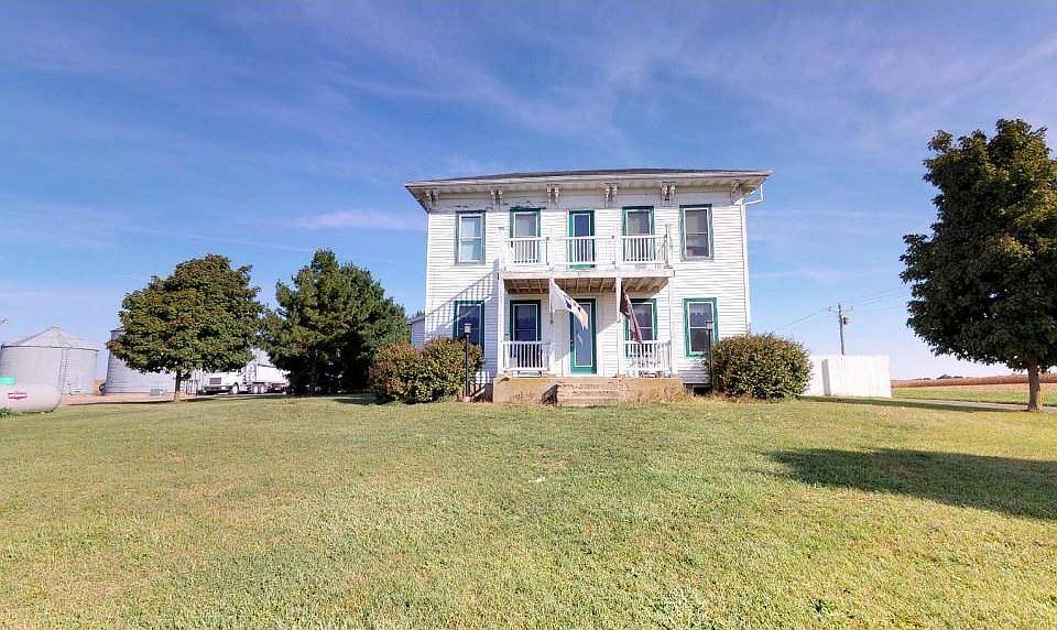 Post Civil War two Story home sits on almost 2.5 Acre lot! Surrounded by fields. Neat old silo in back could be made into a great little private space!House has 3 bedrooms, 2 baths, main floor laundry, super large kitchen, parlor with woodburning stove. Most windows are double pane. Covered patio in back is super for cookouts and family gatherings. Spacious 2 car garage.Neat old woodwork and stairway. Old house lovers will appreciate the charm and character! Seller willing to give credit at closing for painting of overhang and installation of siding at top of east and west of house.