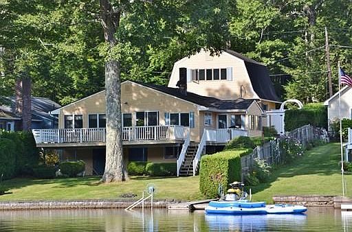 ISLAND LIVING AT ITS BEST! Incredible panoramic views from this sought-after location on Gate Island. Stunning updated home with guest house and boat house! The main house is completely renovated and features an open flowing floor plan perfect for entertaining and family fun! New sleek kitchen with white cabinetry, white quartz counter tops, white subway tile backsplash, new stainless steel appliances and skylight opens to dining room and family room with pellet stove, vaulted ceiling, skylight, rich hardwood floors, built in wet bar and wall of windows opens to enormous deck with breathtaking views of Otis Reservoir. Master bedroom suite with vaulted ceiling and French doors leading to office/sunroom. Updated baths, large mudroom, new fixtures, new furnace. Large lower level with lots of storage. Guest house with bedroom, living room, full bath and storage. Oversized 2.5 car garage, deep water dock with boat lift and covered awning. Nothing to do here but move in and enjoy!