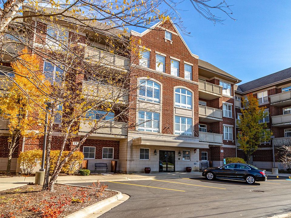 2020 FLOORING AND PAINT THROUGHOUT! PERFECT LOCATION! IMMACULATE CONDITION! Corner unit and elevator in building! Walk into your new home and embrace gorgeous high ceilings and desirable open floor plan. Spend quality time in your spacious living room featuring exterior access to balcony, ideal for outdoor entertainment. Gather in your sun-filled dining room with fantastic views. Make memories in your beautiful kitchen highlighting large island with breakfast bar, matching stainless steel appliances, granite countertops, pantry closet, and an abundance of cabinetry. Relax in your amazing master bedroom boasting striking wall of vast windows, huge walk-in closet, and ensuite with double vanity and large whirlpool. Laundry is conveniently located in unit. Full bath and second bedroom featuring walk-in closet complete floor plan. Large storage unit located right down the hall! Enjoy a great workout in your building's exercise facility. Parking space in heated garage along with plenty of outdoor parking! Located near downtown Palatine and close to trails. Come see this home quick before it's gone! *Current taxes do not include homeowner exemption*