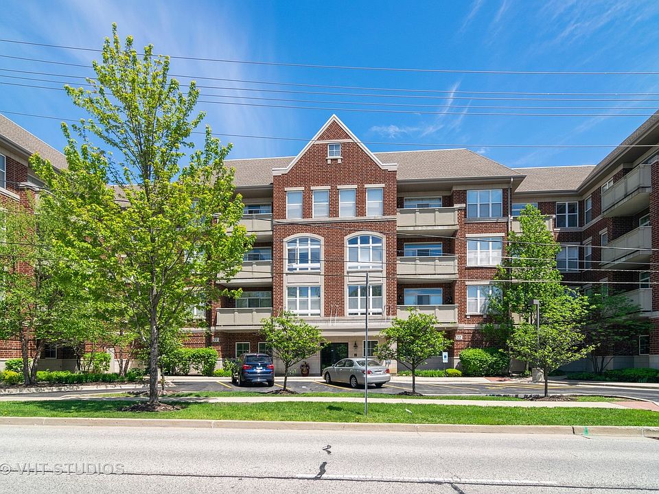 Priced below market! Light & bright, this wonderful 3 bedroom top floor condo offers fantastic views & so much more! Spacious updated kitchen boasts granite counters, glass tile back splash, Merillat cherry cabinets, SS appliances & room for a table. This freshly painted home features an open floor plan w/ 3 good size bedrooms (3rd BR can be den/office), custom closets in 2nd bedroom & in unit laundry. Master BR w/ dual vanity, tiled shower & whirlpool soaking tub. More highlights: hardwood floors in Kitchen & main living areas, upgraded faucets, light fixtures & huge walk in closet w/ ample storage! Sliding doors lead to balcony w/ gas grill hook up, overlooking the pond & walking path, & offering views of spectacular sunrises. Includes exercise room on main floor, parking space in heated garage & an additional locker for storage. Fantastic location situated in Fremd HS district 211 and just minutes to downtown Palatine shopping, restaurants & Metra! Welcome Home!
