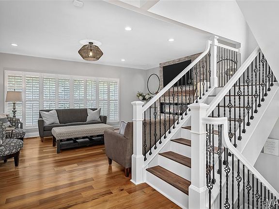 Exceptional 5 Bed/3.5 Bath Home w/4200 sq ft of living space in Wyndgate Village situated on a quiet end of a cul-de-sac & backing to mature tree line, this impeccably updated 10-year-old home offers refined style in one of the most desirable communities—close to schools, highways, & shopping. The original owners have transformed this home w/ thoughtful upgrades throughout. The kitchen features new quartz counters, gas range, double ovens, & a spacious pantry—perfect for entertaining & everyday living. Tall baseboards, crown molding, wood shutters on every window, & detailed millwork elevate every room w/ elegance. The MF showcases tall ceilings, exotic tiger wood flooring, stacked stoned fireplace w/ inviting hearth seating, spacious mudroom/laundry designed for modern family life, while durable pergo flooring continues up the stairs & throughout the 2nd Floor. ALL bathrooms beautifully remodeled w/ modern tile & stylish finishes. Outdoor living is a dream w/ a large Ipe Brazilian wood deck accented by Cumaru handrails—both low-maintenance & stunning. The fenced backyard offers space for a playset or trampoline, a partially covered patio, & hot tub wiring. Finished LL w/5th bedroom, crown molding, ambient lighting, & rough-ins for kitchen or bar. Additional features include: A heated & cooled 3-car garage used as a home gym, tankless water heater & zoned HVAC for cost-effective comfort. This home blends timeless design w/ exceptional function an absolute must-see.
