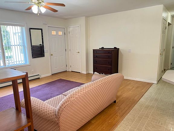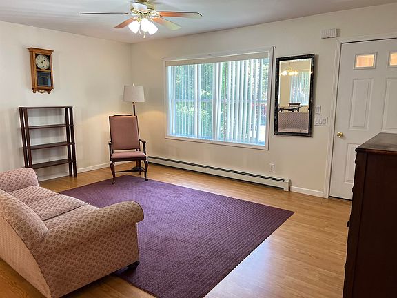 Looking for one floor living in a downsized home near the village of Walpole, NH; then look no more! This property offers simpler living with convenience. Spacious open concept kitchen/dining/living with laminate and vinyl flooring ceiling fan and western exposure. Two bedrooms each with large closet, one full bath with a large linen closet and double vanity. Laundry room situated between bedrooms and living space and back entry. Two enclosed porches, front and back, with windows and screens so enjoy the outside in most seasons. Full basement is dry with interior stairs and bulkhead access. If in the future more finished space is needed the basement is a great possibility. House is wired for generator readiness and generator included. Level half acre lot with large back yard with shade tree can be a wonderful space for furry friends.