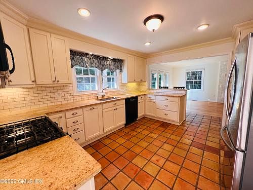 Immaculate, lovely 3 level home right around the corner from North Mianus School. 4 BRs, 3.5 bth, charming kitchen, Family Room with FP & sliders to outdoor terrace and over-size play yard. Primary BR with vaulted ceiling, and terrific fully finished lower level with multiple rooms & bath. Hardwood floors throughout, excellent floor plan, central air, 2 car attached garage.