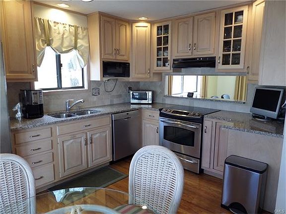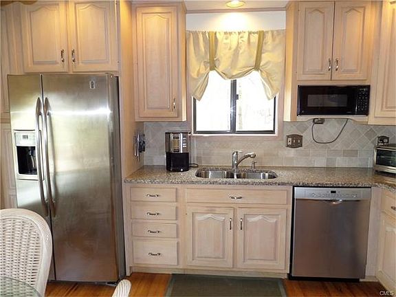 Welcome home to this pristine Contemporary home. Freshly painted walls and gleaming hardwood floors greet you as you enter the dramatic open floor plan. The sun filled living and dining room combination offers a floor to ceiling fireplace, skylight and sliders out to a deck and patio. The kitchen has been beautifully renovated with granite counters and stainless appliances. The large main floor master bedroom has sliders out to a private deck, a walk-in closet and full bath with stunning tile and a radiant heat floor. The other two bedrooms upstairs have hardwood floors and deep storage closets. Sit and relax in the glass sun room year round and enjoy all the season. Convenient location to downtown Ridgefield and all that it offers!!