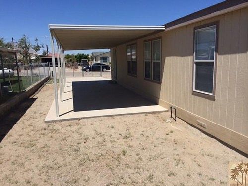 Fantastic opportunity to have your own little slice of heaven in Desert Shores. This mobile home has never been lived and is in great condition. Spacious floor plan and very open layout including drywall finished interior. There is a fenced yard and covered parking. Views of the Santa Rosa mountains to the west and the salton sea to the east. Walking distance to Desert Shores Park and market. There is also a community center and boat launch close by. Don't miss out. Owner may consider carrying with large down payment.