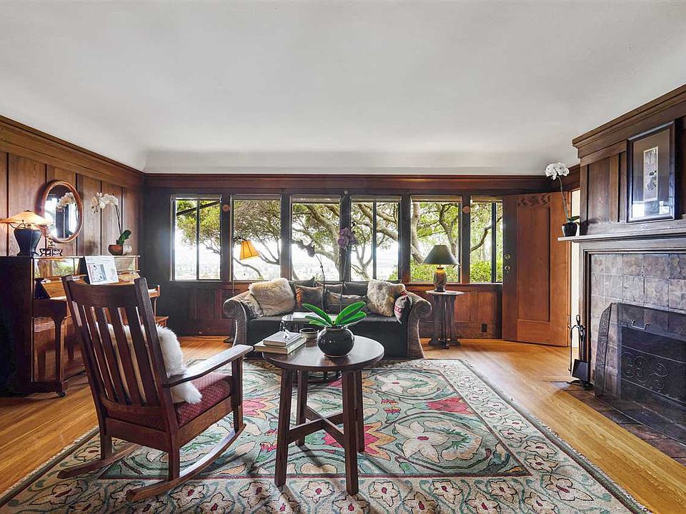 Bay-view top floor condo within beautifully maintained historic building. One of only three units this top floor condo itself has gorgeous wood floors and paneling, original pocket doors, wood-burning fireplace, and walls of windows to the Bay and Campanile. Perched on the Panoramic Hill Beaux-Arts stone staircase leading to hiking trails. 2 of the 3 bedrooms share the same Bay views and the 3rd boasts views of the surrounding mature trees. Private entry and ample storage in the attic.