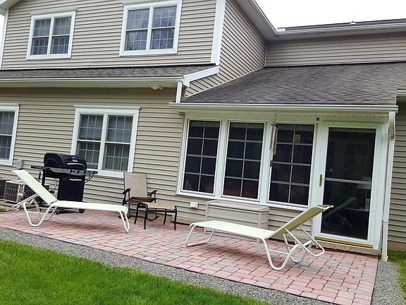 Exceptional 3 bedroom Townhouse with a Light, Airy and Peaceful neighborhood feel. It has many features and updates including marble faced gas fireplace, many large closets, Hot Tub in a 3-season enclosed porch, custom drapes and cell shades, Extra storage in garage, an Infared Sauna, large new Patio, Wooded area behind yard giving privacy. Master Bdm features a .75 bath w/ private Laundry Area. First Floor Bonus Rm- Enclosed sunroom w/Hot Tub. HOA covers road; sidewalks, yard, roof, siding repairs/maintenance also driveway resurfacing. Small perennial garden in backyard was done by seller Buyer can keep it but would be responsible for upkeep or Seller will remove and put grass seed down at Buyers request prior to sale (season pending)
