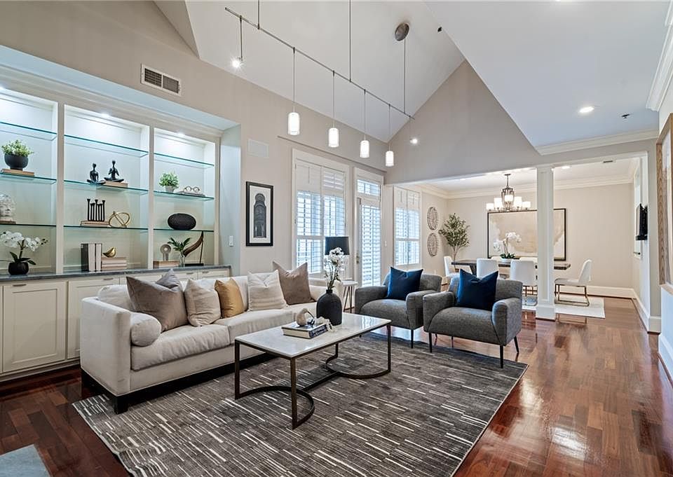 Don't miss this rare opportunity to own a spectacular and spacious Midtown condo! With two levels and not one, but two owner's suites—one on the main level and another on the second level—this 3-bedroom, 3.5-bathroom condo offers an unparalleled living experience. Featuring an expansive layout with additional bonus spaces including a den and an office, this condo boasts unrivaled square footage, setting it apart from other units in the sought-after boutique building. Located on the top floor, the condo offers a large "L" shaped balcony that overlooks a stunning saltwater pool and courtyard, creating a serene and picturesque setting. Inside, you'll find gorgeous hardwood floors throughout, adding warmth and elegance to the space. The kitchen has been thoughtfully renovated and includes a walk-in pantry, Thermador double ovens, a Wolf warming drawer, a Wolf gas range and hood, and a Miele refrigerator/freezer. It's a chef's dream! The living room features a gas fireplace and lighted shelving, adding both comfort and style. Abundant natural light fills the space through spacious windows, creating a bright and inviting atmosphere. The unit boasts exceptional millwork throughout, adding a touch of sophistication to every corner. But the luxury doesn't stop there. This condo offers a climate-controlled wine tasting room that can accommodate over 1000 bottles, perfect for wine enthusiasts and connoisseurs. Storage is plentiful with large closets and an additional storage room conveniently located near the two parking spaces. Enjoy the convenience and peace of mind with 24/7 concierge service, ensuring your needs are always taken care of. Stay active and refreshed with access to the fitness center and outdoor saltwater pool, providing opportunities for relaxation and wellness.