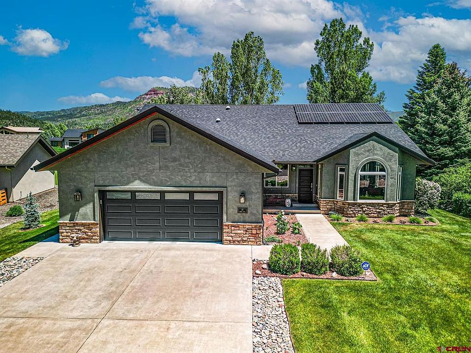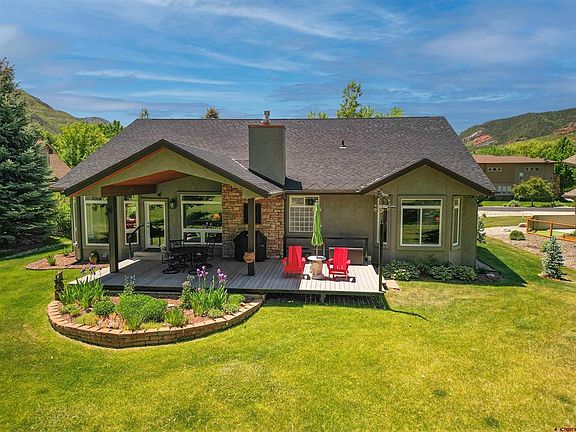 Move-in ready! Welcome to your dream home nestled along the picturesque 15th fairway of Dalton Ranch Golf Course, where luxury meets tranquility under the red cliffs. This stunningly renovated 3-bedroom + office boasts a wealth of amenities designed to elevate your living experience. Step inside to discover a spacious, light-filled sanctuary adorned with beautiful new flooring throughout that seamlessly blends elegance with comfort. The heart of this home lies in its gourmet kitchen featuring granite countertops and top-of-the-line appliances, perfect for culinary enthusiasts and entertaining alike. As you enter the home, you are greeted by the formal living room with dedicated dining area. The dining room flows into the family room with wet bar and vaulted T&G ceilings for a more relaxed visit. Retreat to the primary bedroom suite, complete with serene views of the 15th fairway and a beautifully crafted en-suite bathroom with generous walk-in shower and closet. With two additional bedrooms, there's ample space in the home for guests and/or family members. Outside, soak in the breathtaking views from the 14' x 31' deck constructed of steel and Trex which offers both shaded and sunny aspects allowing you to enjoy the outdoors in style. Additionally, when you step out onto the covered front porch you can take in the views of your neighbor across the street... a natural oasis with meandering lagoon that will never be built upon boasting herons, ducks, geese, swans, and a myriad of other wildlife. Solar panels installed on the roof allow you to embrace sustainable living while keeping the utility bills low. Finally, the oversized 2-car garage includes a row of cabinetry along the wall providing abundant storage, while leaving plenty of space for your clubs, bikes, and other Durango toys. This home effortlessly combines luxury, functionality, and environmental consciousness. Don't miss your chance to experience the epitome of modern living in the valley — schedule a showing today and make this exquisite property your own!