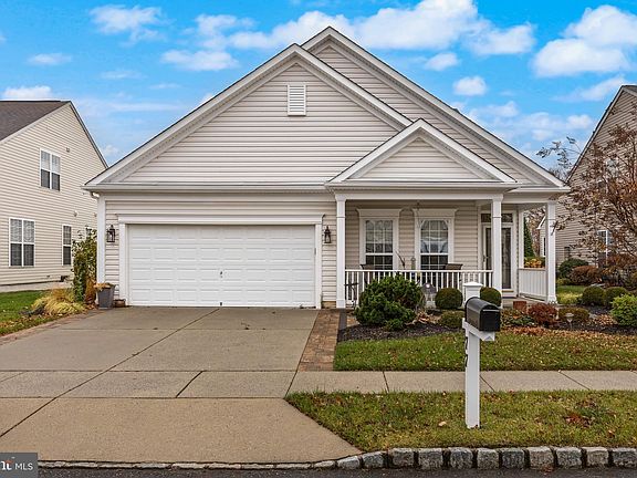 Waterfront Elegance at Traditions at Newtons Landing – 55+ Community Experience breathtaking water views from this stunning Navasink II model, perfectly situated on the Rancocas Creek and adjacent to scenic walking paths. Enjoy spectacular sunsets from your newly installed paver patio, ideal for entertaining or quiet relaxation. This expanded, gourmet-inspired Home has been meticulously upgraded and maintained. Freshly painted interiors, new landscaping and rear awning plus modern conveniences—including a new washer and a hot water heater just five years old—ensure move-in ready comfort. Thoughtful construction packages elevate the home with upgraded front door with transom, detailed interior trim around windows, and custom moldings in the entryway. You'll also find a paver walkway leading to the covered front porch and a 2 car attached Garage. Entertain with ease in the open-concept layout featuring a front Living / Sitting room and spacious Dining area, where beautiful Brazilian cherry hardwood flooring flows through much of the first floor. A classic gourmet Kitchen complete with Granite countertops, double wall ovens, gas cooktop, recessed lighting, 42” raised panel cabinets, and an island with bar seating overlooks a two-story family room. The Family room is highlighted by a vaulted ceiling, a gas fireplace encased with paneled wall, and a wall-mounted TV—all perfectly framed by creek views. Step out to the paver patio with a custom stone seating wall and retractable awning with remote for seamless indoor-outdoor living! The Primary retreat is a serene haven with a Walk-in closet, built-in storage cabinet, sconce wall lights, and a luxurious bathroom featuring a jetted tub, dual-sink vanity, shower, and ceramic tile flooring. A 2nd Bedroom (currently used as an office) shares a Jack-and-Jill style entrance to a beautifully updated second full Bath with granite vanity and step-in shower. Additional first-floor features include 3 storage closets, a dedicated laundry room, and garage access. Upstairs, a spacious loft, attic storage, and a private 3rd Bedroom with full Bath provide flexible living space. Sellers are offering a $600 credit toward a home warranty of the buyer’s choice. Location, lifestyle, and luxury—all in one exceptional waterfront home. On top of everything - this vibrant commuity offers plenty to do including a Club House, Swimming Pool, horse shoe pits, shuffleboard, tennis/pickleball court and game/party room! Do Not Wait!