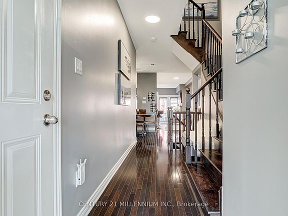 Prepare to Be Impressed! This immaculate freehold executive townhouse in the prestigious Castlemore community is a true must-seen no maintenance fees and loaded with high-end finishes throughout! Enjoy a bright, open-concept layout featuring 9-foot ceilings, hardwood floors, oak staircase, and a cozy fireplace. The stylish kitchen offers granite countertops and stainless steel appliances, perfect for entertaining. Step outside to your maintenance-free deck, a true backyard oasis.Upstairs features three spacious bedrooms, two full bathrooms, a convenient second-floor laundry, and a primary suite with a walk-in closet and private ensuite. Upgrades include: 9-ft ceilings, granite counters, hardwood floors throughout, custom blinds, stainless steel appliances, oak staircase, fireplace, A/C (2025), interior garage access, and a low-maintenance deck. Located in one of Brampton's most sought-after neighbourhoods, close to schools, parks, and all amenities this home is move-in ready and not to be missed!
