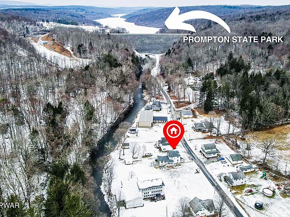 BEAUTIFULLY RESTORED 4 BEDROOM, 2 BATHROOM COLONIAL HOME ON THE LACKAWAXEN RIVER! This completely restored and updated two-story colonial home offers stunning riverfront views and modern comforts, making it a perfect blend of charm and functionality. With all new windows, roofing, flooring, bathrooms, and energy-efficient mini-split systems for heat/air conditioning, this like-new home is truly move-in ready. The main floor is designed for convenience, featuring single level living with a spacious primary bedroom that has its own private entrance. This suite includes carpeting, an en suite bathroom with a walk-in shower, and a laundry area, all while offering breathtaking views of the Lackawaxen River. The kitchen, dining, and living areas have luxury vinyl flooring creating a stylish and practical space for daily living and entertaining. Upstairs, three generously sized bedrooms provide comfortable accommodations, complemented by a fully updated bathroom with tile flooring. The lower level features a partially finished walkout basement with a concrete floor, workshop bench, and sink. This space can easily be transformed into a large family room or additional living area to suit your needs. The outdoor spaces are equally impressive. A large, level backyard provides easy access to the stocked trout stream, perfect for fishing enthusiasts, while the brand-new front porch is ideal for relaxing and taking in the serene surroundings. A detached shed offers ample storage space, adding to the home's functionality. Just a short drive away, Prompton State Park offers endless opportunities for hiking, fishing, and recreation making this home a haven for outdoor enthusiasts. With scenic views, original woodworking throughout, and modern updates that enhance its charm, this home is the perfect retreat. Conveniently located near Prompton State Park and downtown Honesdale, it offers the best of accessibility and practicality!