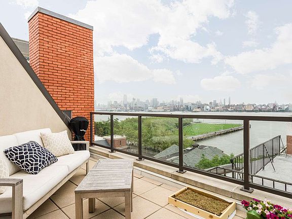 Located right across the street from the Hoboken PATH, this penthouse is a commuter's dream, making your trip into NYC just under 10 minutes! Come see this dramatic 2 bedroom/2 bathroom penthouse with bedrooms on 2 levels and a breathtaking view of Manhattan to soak it all in. Enjoy the skyline view from your large attached private patio while you sip on your morning coffee, or unwind with a cocktail and savor the sunset reflecting off the Manhattan buildings. Upgraded kitchen with stainless steel appliances and wide plank oak floors make this home truly desirable. Parking is included and located in the Hoboken municipal garage on 2nd and Hudson St. Close to shopping, dining, nightlife, and everything Downtown Hoboken has to offer!