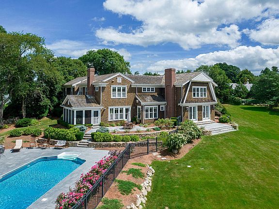 Uncompromising setting for this extraordinary 4 bedroom, 5 bathroom shingle style home located down a quaint lane to the sea. Just steps to Scudders landing and the tidal flats, this architectural delight, designed and built by Barnstable Harbor Builders, is distinguished by unsurpassed workmanship, top grade materials, and a host of custom features. Enjoy the spacious chefs kitchen, luxurious master suite, formal living and dining rooms, family room with stone fireplace and the screened porch overlooking the heated in-ground pool, pool house and acre and a half of bucolic landscape. Garage parking for four cars, the detached studio in-law, wonderful wine cellar, 4 fireplaces, library with overlook balcony and spectacular location complete this gracious estate property.