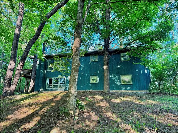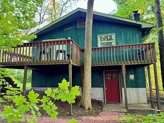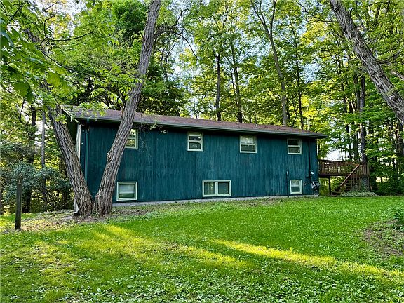 Peaceful, secluded property on the market for the first time! This charming family home was built in 1972 by the original owner. The home is set back from the road behind a meandering stream and surrounded by a wooded area, across the road is a Christmas tree farm which makes for almost total privacy. A raised ranch style with a finished basement that includes a family room, workshop area, laundry room, bedroom and full bathroom. Upstairs has another family room, 3 bedrooms, a full bathroom and a kitchen connected to the dining room with glass doors to the deck, perfect for your morning coffee. There is a large private yard with established fruit trees and a large area once used as a vegetable garden. A large 2 bay detached garage with awnings for additional storage areas along with a small barn building with a chicken coop.