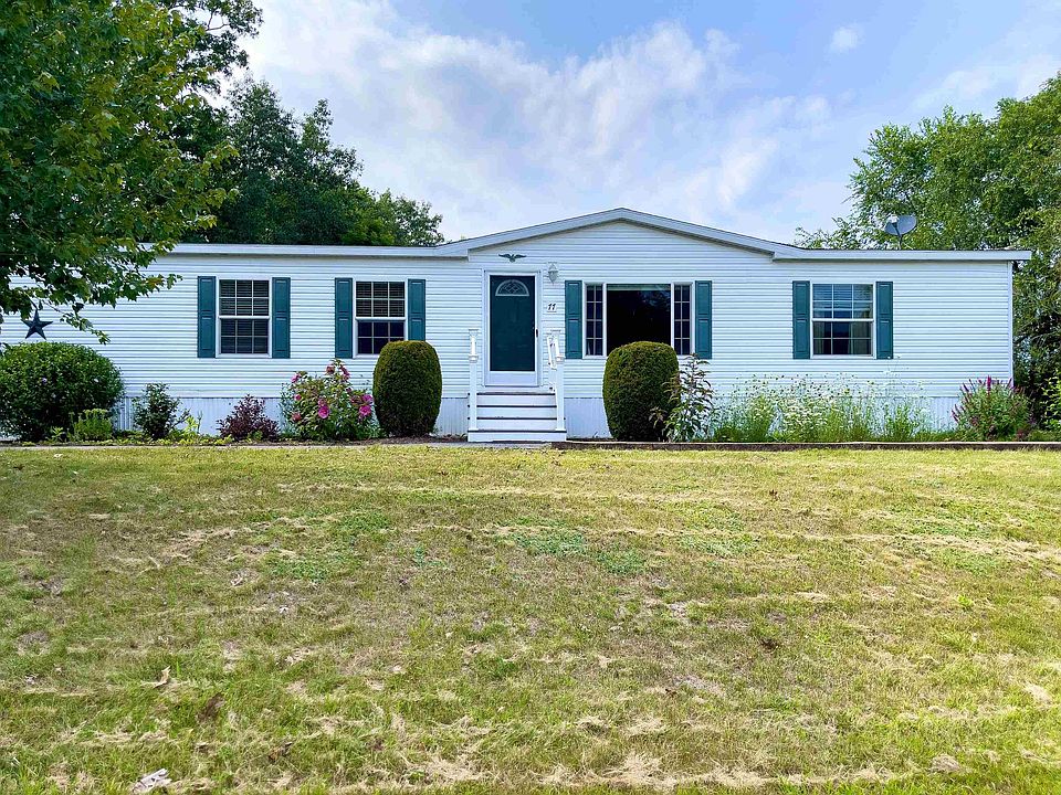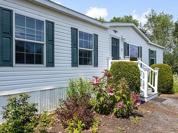 Discover the epitome of comfortable living as you step into this spacious home w/its sprawling interior awash w/natural light that merges generous living spaces. The floor plan incorporates 3 bedrooms, the main w/2 large closets & an en-suite w/dual sinks, walk-in shower, skylight, & built-in cabinets like you wouldn't believe. On the opposite side of the home, you'll find 2 additional large bedrooms, each w/its own walk-in closet. And convenience continues with a 2nd bathroom across the hall. The eat-in kitchen is the heart of the home here, w/all updated appliances, maple cabinets, ample counter space, & center island. Located off the kitchen is the dining room & the first of 2 large living spaces. A-joining the kitchen is the 2nd living room w/built-in entertainment center. Sliding doors lead out to the 3-season room, overlooking the backyard which is home to multiple garden spaces & is bordered by mature trees. Extra features; vaulted ceilings w/skylights in the kitchen & bathrooms, updated laminate wood flooring & ceramic tile floors in the kitchen, separate laundry room, central ac, backyard patio, & shed w/electricity. Finally, beautiful perennials & fragrant bushes line each side of the home. All situated on an oversized lot at the end of a dead-end street. This 55+ community provides all the elements for carefree living. Don't miss the opportunity to own a home that combines comfort, functionality & charm in one remarkable package.