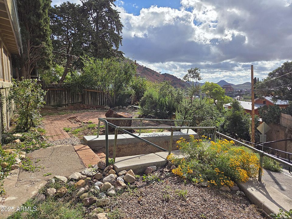 1930's Adobe origins, concrete slab parking for 2, 1 open garage, located in Old Bisbee. The original structure began with adobe and since added onto with frame and stucco finish. 2 bedrooms, each with egress, either to the yard or screened room. Each bedroom includes existing armoires. Anderson wood frame windows, skylights, wood and tile flooring, built in banco with storage, custom kitchen cupboards add additional appreciation. Steam shower in bathroom, refines the modern features. The window screened room is soothing and embodies the definition of the dwelling. Walking distance to downtown, though settled on a less traveled road. The appointed build displays the facing vista.