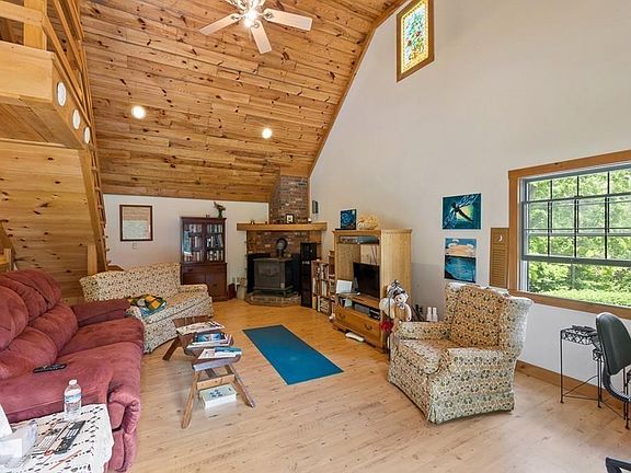 Come see this awesomely private home today! Sitting on over 5 acres, this home is the perfect place to relax and enjoy the outdoors. Outside features include a huge yard, a gazebo, a large deck, a fish pond with waterfall and privacy in every direction! The large kitchen features vaulted ceilings, an island and an indoor garden room. The dining room features sliding glass doors leading to the deck as well as it's own natural stone fireplace. The great room has soaring cathedral ceilings, a separate bar area and a 2nd-story loft. Also, on the 1st-floor is a half bath with laundry. Finishing up the 1st-floor is the master bedroom with it's own master bathroom and a walk-in closet. On the 2nd-floor you'll find 2 more generous-sized bedrooms and a full bathroom. There's plenty of room for storage and future expansion in the walkout basement and 2-car garage. Home has a top of the line Buderus heating system as well as 3 wood stoves (basement, garage, great room). Wired for generator.