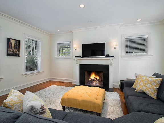 Wonderful, quiet in town location on cul-de-sac. Designed and built by celebrated Bill Gardiner/Judy Larson Team with excellent quality, superior detailing, large windows. Large kitchen with center island, eating area and top of the line appliances. Three parking spaces:One garage, one porte cochere next to rear garden and one designated outdoor space. Elevator to all 3 stories.Elevator has exterior entrance in addition to 3 interior. Second floor library presently used as 4th bedroom.
