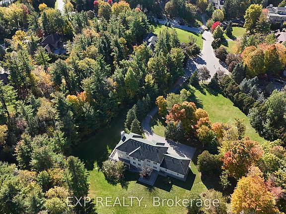 Exceptional opportunity ,A Rare Luxury Retreat in Prestigious Woodland Acres Set majestically on 6.12 acres of beautifully treed land, this distinguished estate blends timeless architecture with endless possibilities. Offering 5,696 sq. ft. of elegant living space plus a 3,000 sq. ft. walk-out basement, it exudes quality craftsmanship and enduring design.Inside, rich hardwood floors, detailed crown mouldings, pot lights, and a wood-burning fireplace create a warm and inviting atmosphere. The expansive kitchen and high ceilings on both main and lower levels make the home perfect for grand entertaining or intimate gatherings.Surrounded by mature trees, walking trails, and serene natural beauty, this property provides the ultimate in privacy - a true country escape within the city. Solidly built and full of potential, it awaits your personal touch to complete a remarkable transformation into a dream luxury residence.