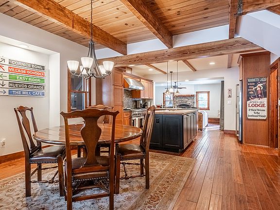 The perfect Mammoth Cabin doesn't exis...Here it is! A Mammoth A-frame that is move-in-ready and has luxury finishes. You'll love the 5-zone hydronic heating, chefs' kitchen, heated garage, fireplace, and, of course, the treehouse. Enter through the mudroom, with plenty of space for your family or guests to kick off their wet shoes and clothes. You'll then find yourself in the great room, which consists of the dining room, kitchen, and living room. This impressive kitchen has Caesar stone countertops, a gas range with six burners and a griddle, a wine refrigerator, and much more. There is a laundry room and bathroom conveniently tucked off to the side. Take one step down to the living room, which has a classic wood-burning fireplace. Keep all your wood dry and close by with a covered enclosure that could be converted into a dog run/pen. Additionally, the fenced yard is absolutely gorgeous, especially in the summertime. Enjoy the hot tub on the Trex deck, with treehouse views. All three bedrooms are upstairs, and each has unique characteristics like vaulted ceilings, a loft, and a wrap-around closet, to name a few. The location of this Mammoth beauty is stellar! You're within a short distance of your favorite places to eat and socialize in Mammoth including Stellar Brew, Morrison's, Liberty Bar, and not to mention the free shuttle bus—you get it right? You'll have to see this perfect Mammoth cabin to believe it.