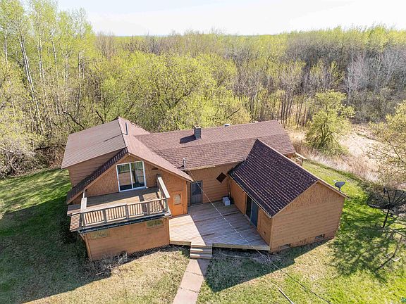 Looking for a home in Esko to fix up? This is it! This home sits on 10 acres, has a 40 x 55 pole building for parking or storage for your toys, and has multiple decks for enjoying a beautiful day. The main floor has three bedrooms plus an office, pantry off the kitchen with a deck, spacious living room with hardwood floors, and a jacuzzi tub. Upstairs could be used as an efficiency apartment with a kitchen, full bathroom, dining area, living room with a fireplace, and a balcony. The basement has lots of extra storage. This home is ready for you to make your own. The home needs fresh paint, new flooring, plumbing, appliances, a new main floor bathroom, and other projects. Check it out!