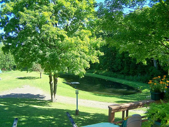 Beautiful country setting with pond and barns on 5 private acres. Just minutes from Bard,Red Hook and Taconic parkway.Custom built split level design with four bedrooms,open dining/kitchen with custom cabinetry,family room with woodstove,1 1/2 baths and beautiful glassed in porch. Nice deck w/hot tub overlooking spring fed pond,stream and mature maple trees. 2 car garage,3 bay pole barn plus large workshop complete this very nice property. Perfect for mini farm,weekend retreat or full time nature lovers.