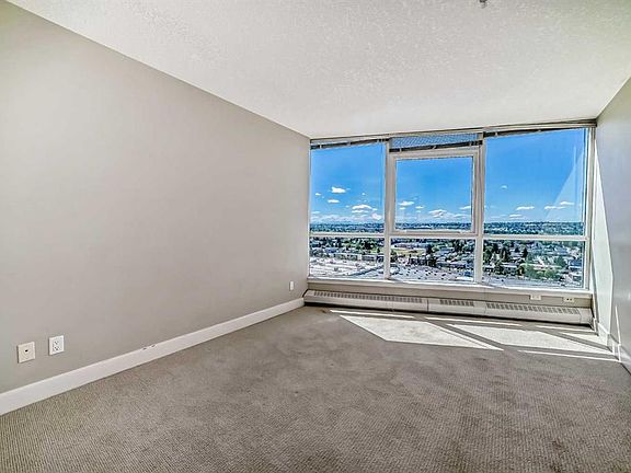 Location & Amenities!! Only 10 minutes away from downtown, direct transit to Foothills hospital, MRU, SAIT and UOC. It is just a short walk from Westbrook Mall, Walmart and Safeway! This beautiful 2-bedroom, 2-bathroom condo located at 18th floor of the prestigious Encore Building, featuring breathtaking views of Downtown Calgary and Rocky Mountains from its south and west-facing balcony. The property has amazing club house facility - indoor swimming pool, exercise & weight room, gym, billiards, ping pong and party/social room. The unit has Brand New kitchen cabinets installed in Feb, 2025, granite counter tops, corner Gas fireplace, Air conditioning, In-suite laundry, balcony and much more. The master comes with full In-suite. Both rooms and the living room with floor to ceiling windows have breathtaking view of mountains. It also comes with an underground heated parking, an underground storage as well as a large number of heated guest parking stalls and 24/7 Security. The rent is for 1 YEAR lease term which includes heat, water and sewage, one underground heated parking, underground storage space and full access to the amenities including exercise room, pool, hot tub and recreation/party room. Available immediately. Renter only pays for Electricity.