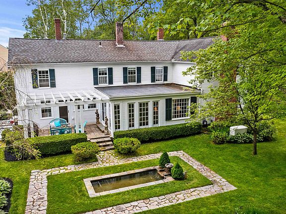 Located on one of the most scenic roads in southern NH, this tastefully updated colonial is sited on 2+ beautifully manicured acres & invites its new stewards to enjoy an elegant lifestyle. Built in the mid-1800s this home shares a rich history with other high end homes on the sparsely populated road. Major renovations, plus the addition of spectacular gardens provide a unique landscape & luxurious living, inside and out. The home is located 1 mile north of Historic Wilton Center in the Davisville district of Wilton & is close to both Pine Hill & High Mowing schools. Year round outdoor activities are available from your doorstep include hiking, trail riding, snowshoeing & x-country skiing. A short walk will lead you to the Historic Frye’s Measure Mill, one of the last remaining water-powered mills. Wilton is an active participant in the NH Main Street renovation program which has resulted in numerous mill shops, antique & gift shops and most recently a river walk along the picturesque Stoney Brook. Fine dining, theater & the arts are 15 minutes away in Peterborough, also home of the MacDowell Artist Colony. The arts prevail locally in Wilton as well, including the popular Town Hall Theatre & Andy’s Summer Playhouse. The Wilton Center Tennis Club is a short bike ride away. The photos speak for themselves. The property is drop dead gorgeous, loaded w/updated features. Come see for yourself, you are bound to be impressed with this piece of paradise! Delayed showings begin 6/22