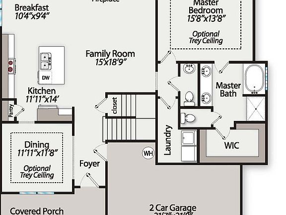 The LISBON boasts an open living space with an impressive kitchen that opens to a spacious family room and breakfast nook. The kitchen’s large island and pantry makes cooking and entertaining easy. The connecting dining room allows for an trey ceilings. The Owner’s suite sports a large walk in closet, double vanity, and water closet. Featuring 4 bedrooms, 3 baths and a large rec. room or bonus space. SCREENED PORCH and grilling patio.