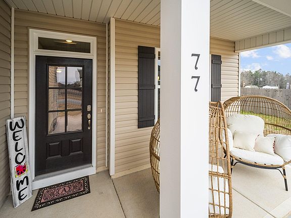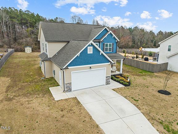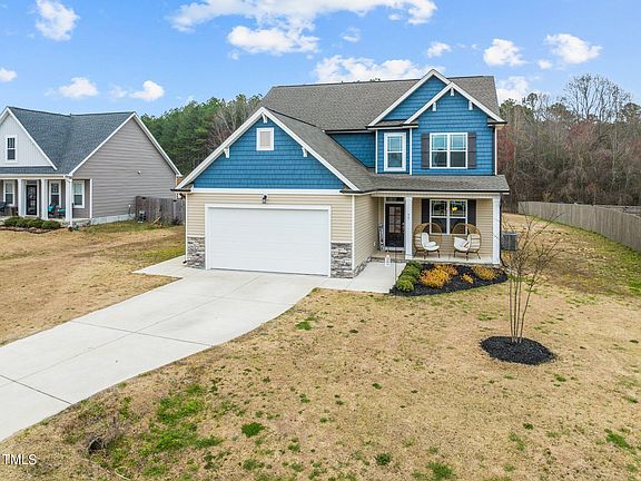 Nestled in the charming town of Angier, 77 Star Valley offers a perfect blend of comfort and style. Welcomed by a large rocking chair front porch and enter into this meticulously maintained home with open-concept space with tons of natural light, revealing an impressive kitchen with elegant quartz countertops, an over sized kitchen island, 42-inch white soft close cabinets, SS appliances and a pantry. The spacious living room boasts a gas fireplace and opens to a delightful breakfast nook.The first floor is a haven for relaxation, featuring the primary owner's suite with a generous walk-in closet, double vanity, private water closet, and a luxurious garden tub with separate shower. The connecting dining room is ideal for holiday gatherings, and the first-floor laundry room adds extra convenience. Upstairs are three oversized bedrooms and two full bathrooms, one of which is a Jack and Jill bathroom with each room having their own walk-in closets. A versatile large bonus space offers the potential for an additional fifth bedroom. Experience the tranquility of this private flat .69 acre. Relax in the manicured wooded lot featuring a park-like backyard with a screened back porch and large grilling patio perfect for your morning coffee, or to unwinded after work surrounded by nature. The backyard also includes a 10x12 storage shed for added convenience.Enjoy country living with No City Taxes, low HOA, yet minutes from I40 and future 540 beltline. This beautiful home is ready to welcome you into a life of comfort and style.