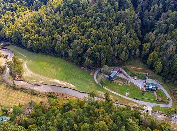Stunning early 1900's era completely restored farmhouse on Broad River 15 minutes to Black Mtn. Orchard, garden, terraces, and fire pit provide exceptional outdoor living spaces with the front porch looking out over the river. Accessed via a private bridge with the house, 2 barns and field sitting majestically opposite. This was formerly the Rasberry Inn B&B. Five bedrooms each with private bath and zoned HVAC mean it is ideally suited for a wedding or event venue or continuance as a B&B. There are acres of flat pasture and river bottom perfect for crops thus making this possible to be a self-sustainable homestead farm. It has it all. Rushing river, pasture, garden, two barns, woodlands. This property has been extensively and meticulously restored. It is a must see for those looking for a nostalgic time and place. See the 3D Interior Tour!
