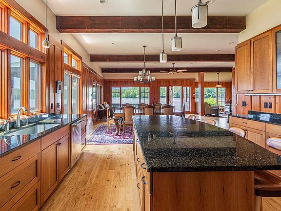 Enjoy the peacefulness of waking up to a gorgeous sunrise ,water lapping the shore, the morning mist clearing and birds tweeting on an Inland Treasure on Kezar Lake. This Contemporary custom built Lodge year round home offers luxury Maine living. Relax sitting on the front porch steps from the water and watching the birds, bald eagles, loons, herons, otters, painted turtles, fish and all the wildlife Maine has to offer. Enjoy going for a boat ride around the lake taking in the mountain views and sounds of nature. This lake is great for fishing, kayaking, paddle boarding, swimming, tubing and floating while enjoying the glistening water swinging in a hammock, barbecuing on the porch, spending time in the woods, hiking on countless trails and moose safari's. Sit by the campfire roasting marshmallows listening to the loons. Experience sitting on the Adirondack chairs listening to the loons and watching the sunsets in Maine '' The Way Life Should Be''.