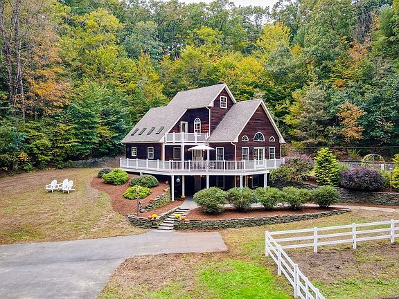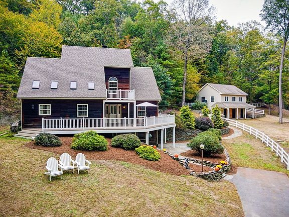 Luxurious living for both you and your horses.You will feel a sense of pride every time you cross the bridge over your babbling brook to this post & beam home. Enter along the fieldstone walkways and professionally landscaped gardens to the lower level family room warmed by a soapstone woodstove. Lower level also has large office and a full bath. Main level w/ it's open floor plan boasts large kitchen with gas range and SS appliances. Living room with exterior access to multiple decks overlooking the horse pasture. Two bedrooms and another full bath. Primary bedroom is on the second floor with full bath, double closets and exterior balcony. There is also a bonus loft! There is an impressive 3 stall barn with T&G finished tackroom and feed room. Barn has water, frost free hydrant, matted stalls and a hay shoot. There is also a large unfinished area above the barn that can be a home gym, office or lots of storage. Bring your horses home to this turnkey private horse farm!
