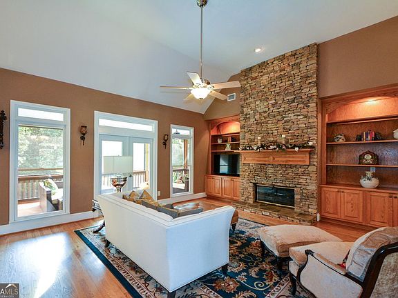 6+ Acres with mountain views, a pool framed by gorgeous flagstone and beautiful landscaping. 2 Acres fully fenced. Remaining acreage leads to Sharp Mountain Parkway -perfect for another home on 3 acres, enclosed RV or boat storage or classic car garage. *HAPPY NEW YEAR! - 2026 HOA DUES PAID IN FULL, BUYER WILL NOT NEED TO REIMBURSE SELLER AT CLOSING* Discover this beautifully crafted custom home nestled on a corner lot in the prestigious Preserve at Sharp Mountain. Your own private oasis with breathtaking views of Tally Mountain. Inside, you'll be welcomed by a warm and inviting family room featuring a floor-to-ceiling real stacked stone fireplace, flanked by built-in bookcases. French doors open to an expansive screened-in rear porch, the perfect place to unwind and enjoy serene mountain views. The open-concept kitchen boasts granite countertops, stainless steel appliances, a breakfast bar, and seamless flow into the family room-ideal for entertaining. A cozy keeping room just off the kitchen overlooks this tranquil property; creating a peaceful spot to relax any time of day. The main-level master suite includes a spacious sitting area and a luxurious bath with a soaking tub framed by corner windows, offering a spa-like retreat with scenic views. The finished terrace level provides even more living space with a second custom kitchen, family room and a private bedroom with full bath-ideal for multi-generational living or entertaining guests. Step outside to a covered full-length patio with built-in gas grill and cooking area just steps from the pool. Located just inside the front gate of The Preserve at Sharp Mountain, this home offers privacy, views, and convenience-just 10 minutes from Highway 575 for an easy commute to Atlanta.