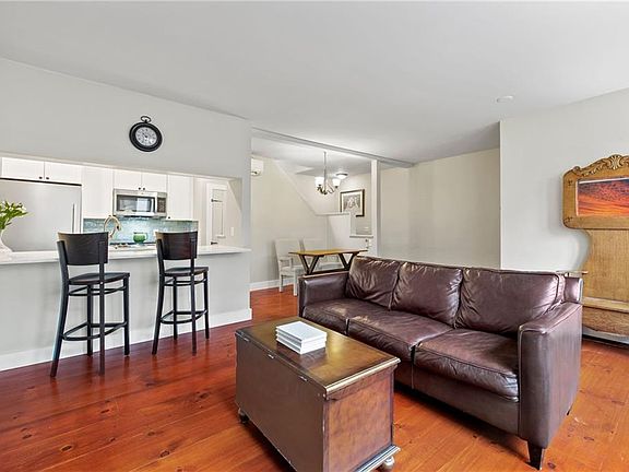 The townhouse condo you’ve been waiting for in the ultimate downtown location. Just blocks away from your door and private parking are historic Washington Square, bustling Brick Marketplace, the harbor and Newport Shipyard. The modern simple interior features wide-plank wood floors on all 3 levels, a large living/dining space, and a brand new kitchen that has never been cooked in. The main living/sleeping spaces have mini splits for efficient AC/heat and year round comfort. The second level includes a spacious bedroom, updated full bath, convenient laundry, and ample storage. The pinnacle is a large sunny loft on the third level — an ideal home office or guest space with stunning views overlooking the green space of Cardine's Field, and a peek of the harbor. A south-facing exposure and skylights ensure that sunshine pours in on all three levels of this surprisingly spacious home. And during early evening summer games, you'll be able to hear the crack of the bat and the roar of the crowd as you cheer for the Newport Gulls before you walk downtown for dinner.