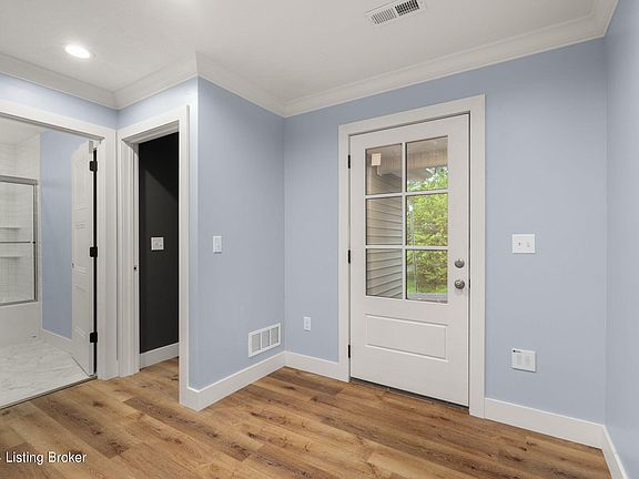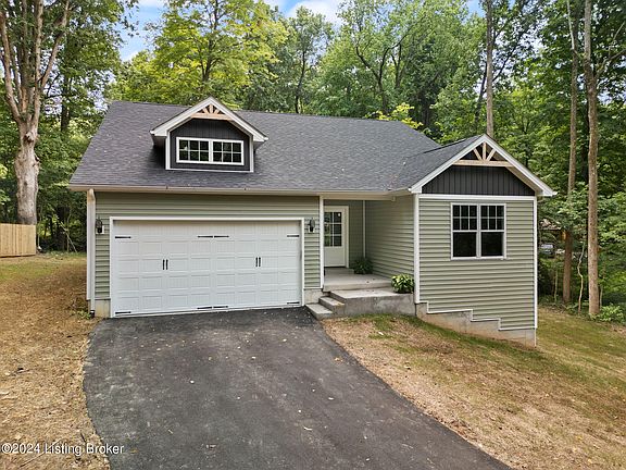 Welcome to your new dream home nestled on a serene wooded lot with mature trees, offering the perfect blend of tranquility and convenience. This stunning ranch home, boasting new construction, is ideally situated in Elizabethtown, ensuring easy access to amenities and commuting routes. As you step inside, you're greeted by an attractive ship lap entryway wall accent, setting the tone for the impeccable craftsmanship and attention to detail found throughout. Luxurious LVP flooring flows seamlessly, complemented by recessed lighting that illuminates the open concept floor plan. The heart of the home is the spacious great room, adorned with 10' ceilings and elegant crown molding, creating an inviting atmosphere for gatherings and relaxation. Glass entry doors flood the space with natural light, accentuating the beauty of the interior. Indulge in culinary delights in the gourmet kitchen, featuring quartz countertops, soft-close cabinets, and a custom tile backsplash. The breakfast island boasts a stunning black weathered quartz top with a live edge, perfect for casual dining or entertaining guests. A convenient pot filler above the stove and a pantry add functionality and style to this chef's haven. Retreat to the expansive primary bedroom, complete with a walk-in closet featuring custom built-ins for optimal organization. The ensuite bathroom exudes luxury with a dual vanity sink, custom tile finishes, and a barrier-free walk-in shower with dual shower heads, including a rain head faucet for a soothing waterfall effect. Both bathrooms in the home showcase exquisite custom tile finishes, promising a spa-like experience every day. Step outside to the covered back deck, where you can unwind and soak in the serene views of the wooded lot and listen to the gentle trickle of the creek nearby. Experience the epitome of modern living and timeless elegance in this meticulously crafted home, where every detail has been thoughtfully designed for your comfort and enjoyment. Don't miss the opportunity to make this your own private retreat in a prime location.