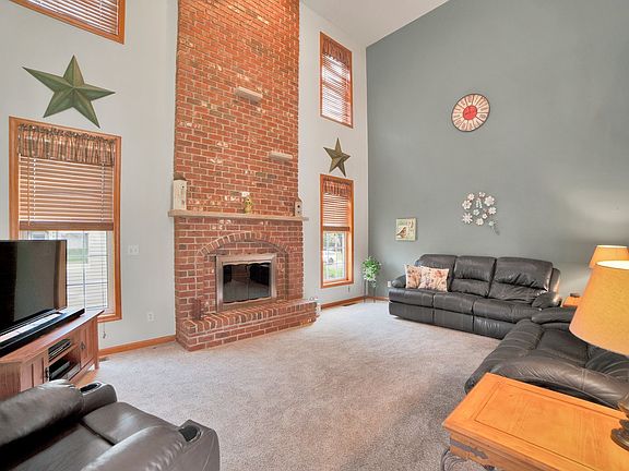 This luxury Lake Holiday home offers a haven of tranquility and natural splendor. When you first walk in, you are greeted by a two-story foyer with a balcony. Once you walk past through the foyer you have a massive two-story family room with a floor-to-ceiling brick fireplace and built-in stone shelves. Gourmet updated Kitchen with White 42" Cabinets, S.S. appliances, and pantry for all your needs. Large Dining room overlooking your Private deck, pool, and Custom outdoor Fireplace with a paver patio fit for entertaining. Moving upstairs into the primary suite with yes two walk-in closets!!! Come relax in your huge Soaker tub or Separate shower, the primary bathroom also offers vaulted ceiling, double sink with private lav. Three more large bedrooms, catwalk and second floor laundry. Heading down to the lower level you will be greeted by a huge custom Bar built for entertaining. To your right is the second family with a stone fireplace to cozy up to in those cold winter nights. The lower level also offers a full bath, Reading room, Storage room and a bunker with all four walls and celling being concrete incase of any emergency. Huge side yard for games and fun plus shed for storage. Large tandem 4 car garage with work station. Updates done-- Roof 2017, Dishwasher 2024, Water Heater 2024, Furnace 2023. One of a kind and move in ready. HURRY. Correct taxes are $7652.34