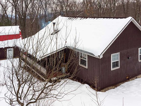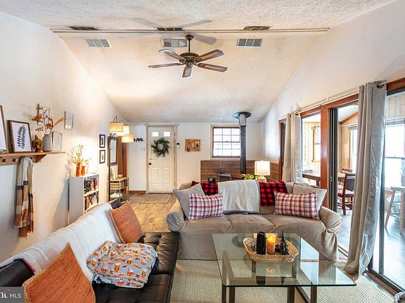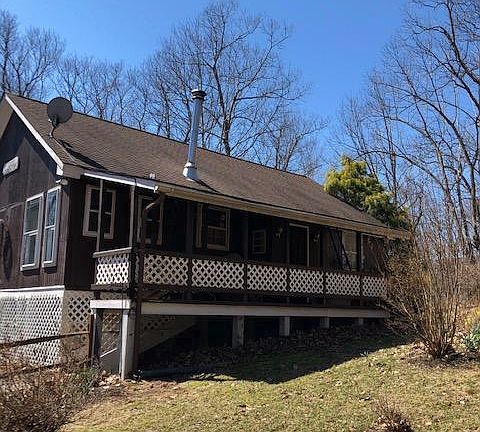 Newly updated cabin with laminate flooring, bath and other upgrades throughout. Cute 2 bedroom, 1 bath with large family room and a covered porch for outdoor living. Kitchen features a breakfast bar and stackable washer and dryer. Wood burning stove with ceramic surround to warm up to on winter days. Property backs to almost 23,000 acres of Sleep Creek Wildlife Management Area which features a lake, hiking trails and hunting. The community also has a small lake for non motorized boats and swimming. There is a detached garage with electric and a second level. The winter views are beautiful! There is a partial basement for additional storage. Perfect for a year round residence or for a weekend getaway!