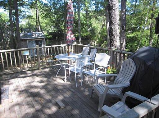 An almost NEW 2,079 sq ft Cape for under $300,000?? That is only $144 sq ft which you could never build for! 10K under Assessment! Completed August 2011 and lightly used. Open Plan Kitchen/Fireplaced Living Room, Huge 1st flr master bed with 10 x 7 walk in closet, 2 very large bedrooms up w/front dormers and a full dormer across the back. Gas FHA set up for A/C. (Needs a compressor, approx. $2,500) Beautiful lot with large Mahogany deck overlooking Cranberry bogs and bordered by the Coonamessett River (small channel). PLUS oversized, detached 2 car garage/WORKSHOP w/loft space and high, newer doors. Perfect for Contractors/Car Buffs/Hobbiests. Hardwood Floors on main level including master. All info to be verified by buyer/buyer agent. Brokered And Advertised By: Oceanside Realty Group Listing Agent: Thomas P. Mahedy