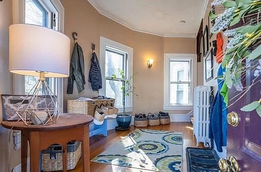 Showings By Appointment Only. The moment you step into the sun-drenched foyer youll know youve come home. Admire every nook and cranny in this renovated Victorian. As you make your way upstairs, appreciate the wooden arch and stained-glass window. Having dinner will be a breeze with plenty of room, and youll love decorating your fireplace mantel. The bay windows in the living room amplify the natural light. Two bedrooms on the main level offer ample space, spacious closets, and beautiful glass doors. Prepare sumptuous meals in the updated kitchen with quartz countertops and a beautiful tile backsplash. Off the kitchen is a deep pantry plus in-unit laundry. On the third level stop and admire the views of Melrose out the window before you retreat into the third bedroom. An extra room on this level offers a closet space too. Upstairs youll also find an extra-large storage space in the attic. From this ideal location, mere moments from Downtown, enjoy all that Melrose has to offer.