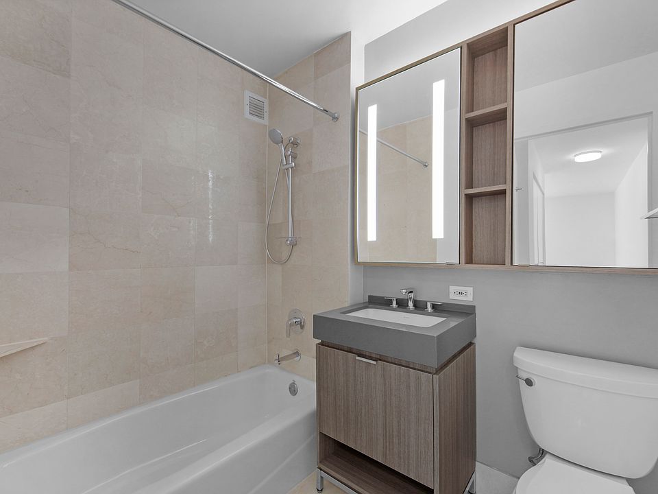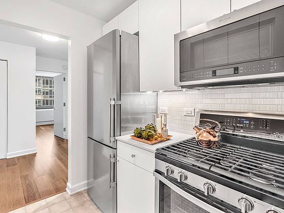 Available for an immediate move on a 15-month lease Step into luxury living at Apartment 10H in The Vanguard Chelsea, located at 77 West 24th Street, New York, NY. This stunning corner unit boasts a bay window in the living room, offering double exposure and flooding the space with natural light. The 747 square feet apartment has been newly renovated to perfection, featuring Caesarstone kitchen countertops and a designer backsplash for a modern touch. Enjoy the convenience of a sophisticated lobby, 24-hour concierge service, and a fully equipped fitness center. With a landscaped terrace, conference room, and high-speed internet access, this apartment offers a lifestyle of comfort and elegance. Don't miss the chance to call this exquisite apartment your new home.