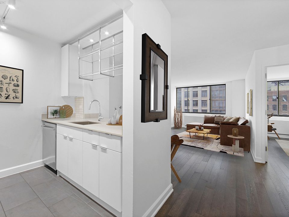 Welcome to Apartment 12F at The Vanguard Chelsea in New York City! This stunning 1-bedroom unit, designed by COOK+FOX Architects, boasts a walk-in closet in the bedroom and a pass-through kitchen with Caesarstone countertops and an exquisite Ann Sacks ceramic backsplash. The bathroom is adorned with Botticino marble and a custom vanity featuring LED lighting. Residents can enjoy a plethora of amenities, including a modern resident lounge, a state-of-the-art gym, and a landscaped outdoor terrace with BBQ grills and urban vegetable gardens. This LEED Gold-Certified building also offers a 24-hour concierge, and a children's playroom with a private terrace. Don't miss the opportunity to live in luxury at The Vanguard Chelsea!