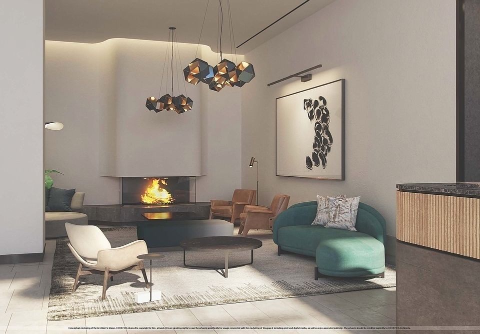 The 31-story Vanguard Chelsea features a limestone and bronze entrance to a sophisticated contemporary lobby with geometric pattern limestone floor, layered Venetian plaster, mahogany and cast stone concierge console and bronze accents. Building features include: Sophisticated, contemporary lobby with geometric pattern limestone floor, mahogany columns and limestone concierge console 24-hour concierge Residents-only fully equipped fitness center and aerobics room 4,000 sq. ft. landscaped terrace Conference room Hi-speed Internet and telephone access (three providers) Cable TV WiFi Telephonic intercom system/multiple phone lines per residence Bicycle room and individual resident storage 24-hour parking garage with valet attendant Maid and valet services Unsurpassed level of service