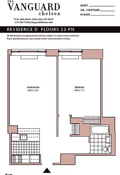 The 31-story Vanguard Chelsea features a limestone and bronze entrance to a sophisticated contemporary lobby with geometric pattern limestone floor, layered Venetian plaster, mahogany and cast stone concierge console and bronze accents. Building features include: Sophisticated, contemporary lobby with geometric pattern limestone floor, mahogany columns and limestone concierge console 24-hour concierge Residents-only fully equipped fitness center and aerobics room 4,000 sq. ft. landscaped terrace Conference room Hi-speed Internet and telephone access (three providers) Cable TV WiFi Telephonic intercom system/multiple phone lines per residence Bicycle room and individual resident storage 24-hour parking garage with valet attendant Maid and valet services Unsurpassed level of service Smoking allowed:No