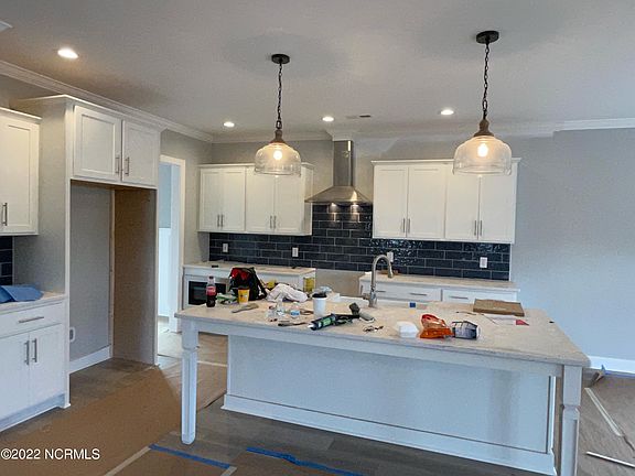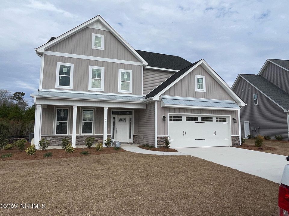 Welcome to The Sanctuary at Forest Sound, one of Hampstead's newest and fastest growing communities! The Hall Crest, from award winning builder, Hardison Building, is currently under construction with anticipated completion in early 2023. The rocking chair style front porch immediately welcomes you and makes you feel right at home in this open 4 bedroom, 3 and ½ bath, 2-story home. This Hall Crest has a bright and spacious living area featuring ceilings with beam accents and natural gas fireplace flowing seamlessly to the kitchen, breakfast area, sitting room and large covered porch. This kitchen will wow you with the large center island, quartz countertops, tile backsplash, stainless steel appliances, including natural gas stove, timeless white cabinets and pantry! The first floor is complimented by a formal dining area with beam accented ceilings, drop zone area off the 2-car garage and a ½ bathroom. Upstairs there is plenty of room for all! The master suite features a trey ceiling, walk-in closet leading to additional storage, and a spacious bathroom with fully tiled walk-in shower, water closet and two vanities with quartz countertops. 3 guest bedrooms, 2 additional bathrooms, and a laundry room complete the 2nd floor. Additional features include wide plank laminate floors throughout 1st floor living area, wood stair treads, natural gas hot water heater, quartz countertops in all bathrooms and sodded and irrigated yard. The Sanctuary at Forest Sound is centrally located in the heart of Hampstead. 15 minutes to Wilmington or Surf City/Topsail and just 1 mile off the Intracoastal Waterway. Future amenity includes a boat and RV storage area. All options and completion dates are subject to change. Completed pictures are of a similar home. Please contact the community agent for details on selected finishes.