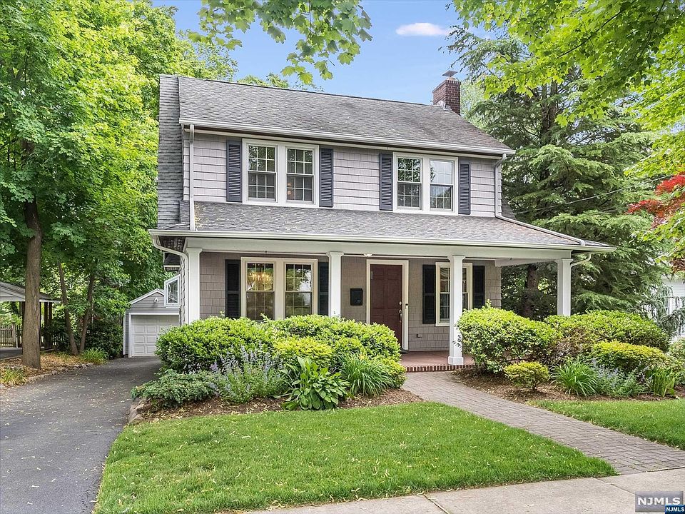 Incredible opportunity awaits in this expanded Front porch Colonial steps away from Ridgewood schools, NYC transportation, and charming Ridgewood Duck Pond. Nestled on a tree lined street with multiple front porch homes, it brings to mind idyllic summer days of conversation and lemonade. This spacious home features many components for today's lifestyle: primary bedroom suite with fireplace, skylights, and an immense walk in closet, spacious family room, central air, and best of all, a generous, deep back yard. Custom kitchen by Ulrich boasts rich cherry cabinets, granite counters, stainless steel appliances, and under cabinet lighting perfectly positioned between the formal dining room and family room. The unfinished basement has high ceilings offering even more options to suit your needs. Newer roof and siding, Pella and Anderson windows, hot water heater replaced approximately 2022. This inviting home is rich with possibilities, just waiting for your personal touch.