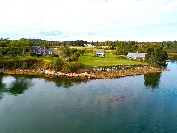 Bucolic saltwater farm with panoramic views across Flanders Bay to Mount Desert Island and the mountains of Acadia National Park. This unique and beautiful oceanfront property includes a renovated 4-bedroom farmhouse, large barn with 4 horse stalls, paddock, artist's studio, boathouse, several garages and the remnants of the former manor house at the ocean's edge. Live in the lovely, sun-filled farmhouse while building your dream home closer to the water. Open fields, mature trees and over a half a mile +/- of water frontage on Flanders Bay and Flanders Stream. The gated estate offers many opportunities. Ideal as a private estate, compound or for development. Beautiful paved road with underground utilities and high-speed internet. Located away from the crowds but convenient to Acadia National Park, the Schoodic Peninsula, restaurants, shopping and all area amenities. This could be your perfect piece of the Maine coast.