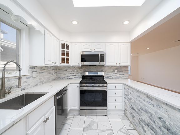 Eat-In Kitchen – Stainless steel appliances with new finishes, quartz countertops, providing ample space for meals, entertaining, and morning coffee.