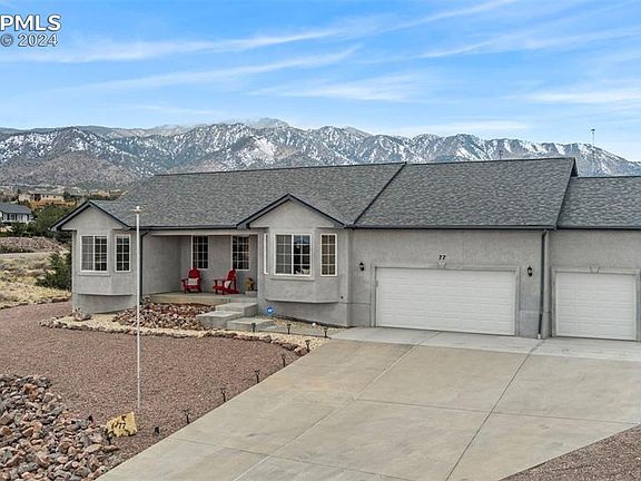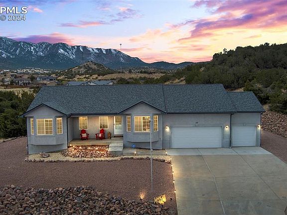 Gorgeous home with views all around in Dawson Ranch, Canon City! You are going to love this low maintenance stucco home with open floor plan! Newer vinyl plank flooring! Vaulted ceilings on the main level! Newly painted kitchen cabinets, granite counters and upgraded appliances in a huge kitchen! Space for a breakfast bar or kitchen table! Large separate dining room with amazing views! The family room has space for a very large couch and cozy fireplace! Main level private master retreat with more vaulted ceilings and spa like master bath with walk in closet and extra linen closet. The kitchen/family and the master bedroom walk out to the private back yard deck! Views everywhere! Main level laundry! The basement has another large bedroom, with walk in closet, media room and large second family room with wet bar, pellet stove and room for entertaining! Three quarter bath and barn doors for charming storage! All this and a fully finished, insulated, painted and textured three car garage with a sink and hot and cold running water. This homes is private and secluded and has views from every angle! You are going to love living here! Radon mitigation system, voluntary HOA, up/down blinds on the main level and ADT security system included. Solar panels will be paid off at closing and will keep your energy bill low!